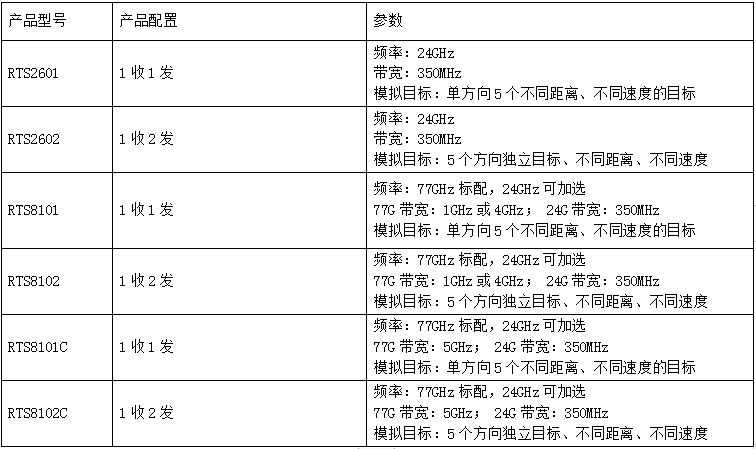 所有RTS产品的参数配置如下表所示: